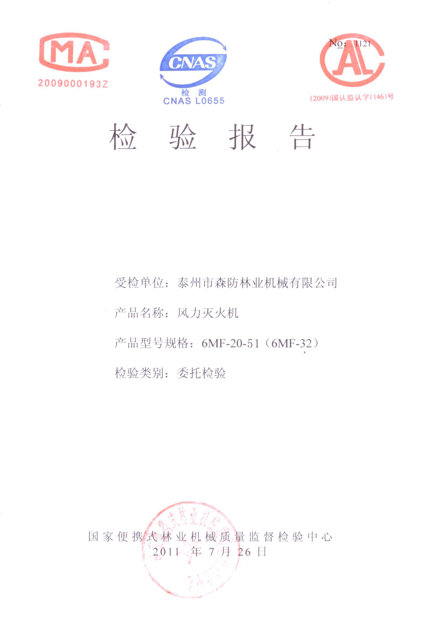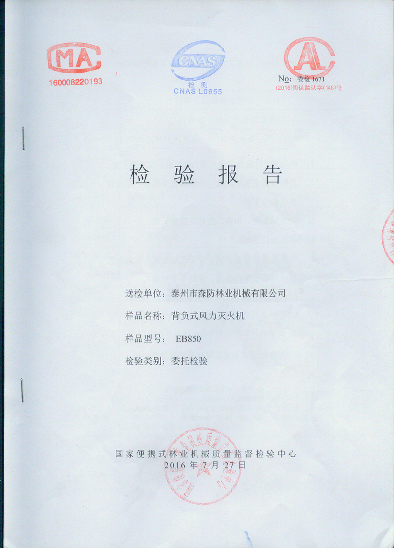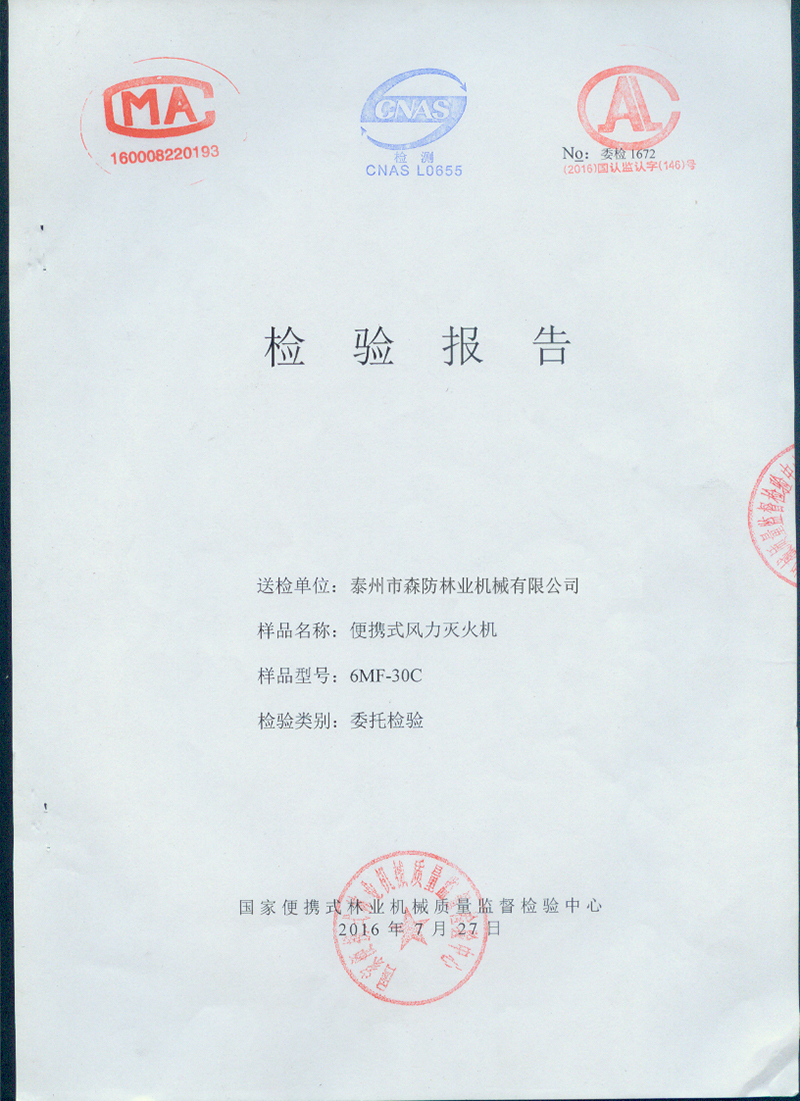 风力灭火机检验报告