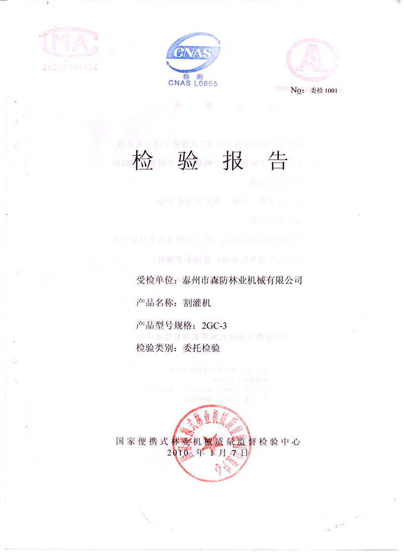 割灌机检验报告