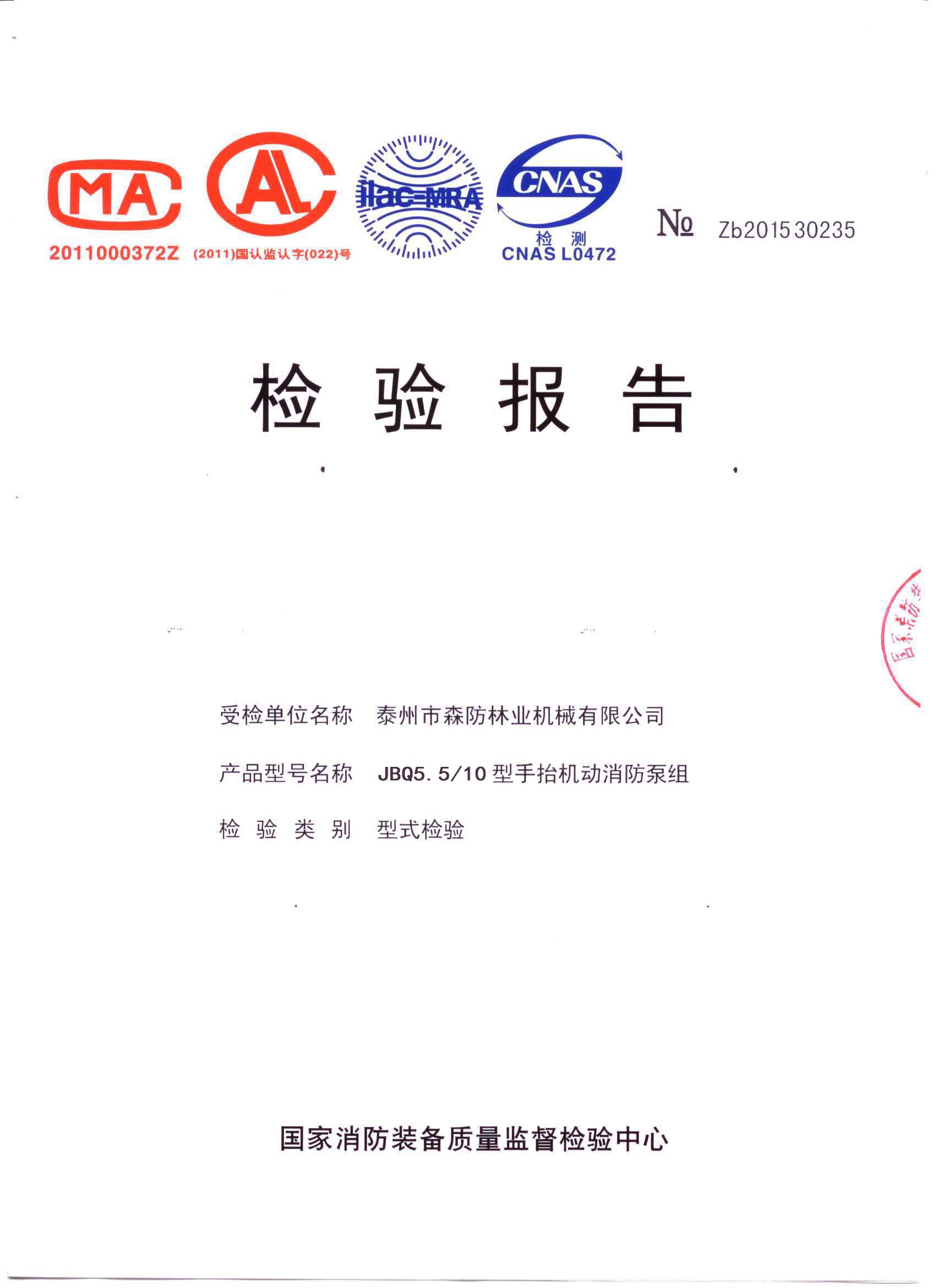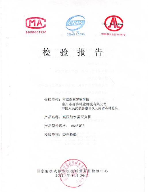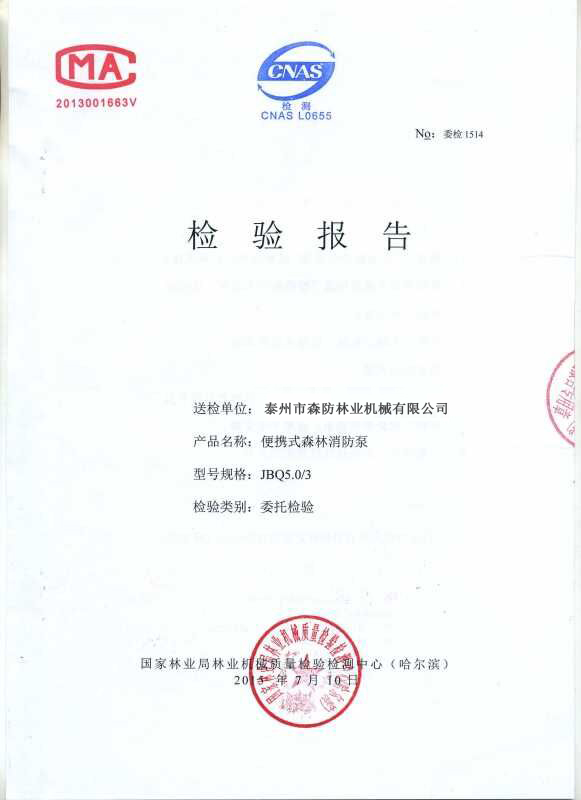 森林消防泵检验报告